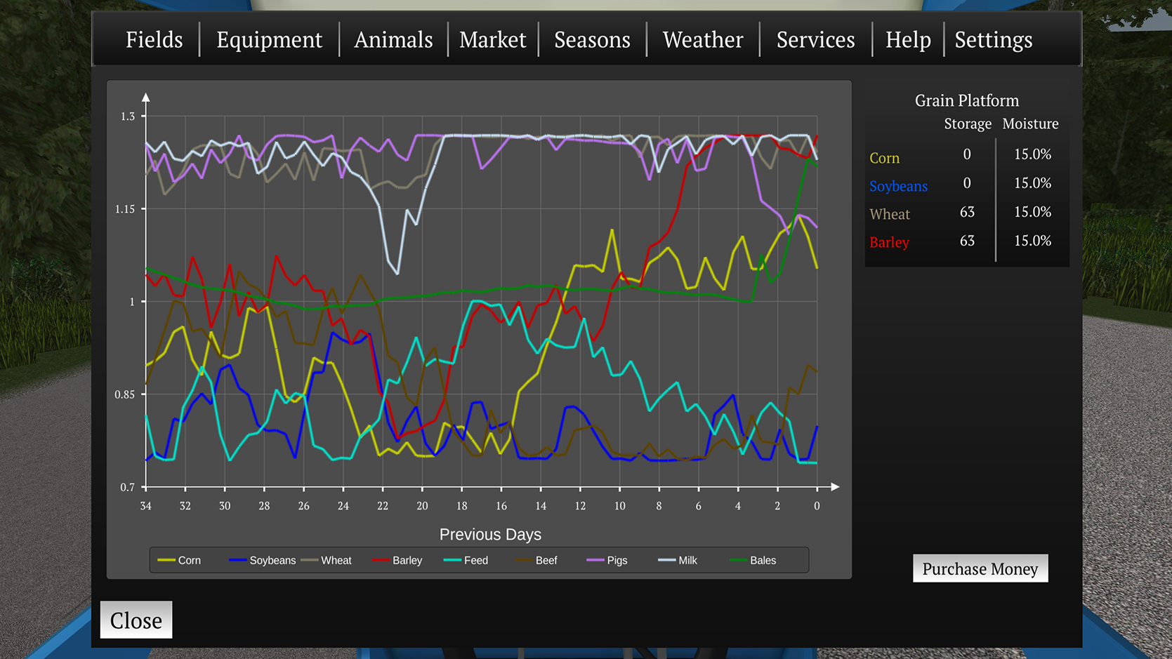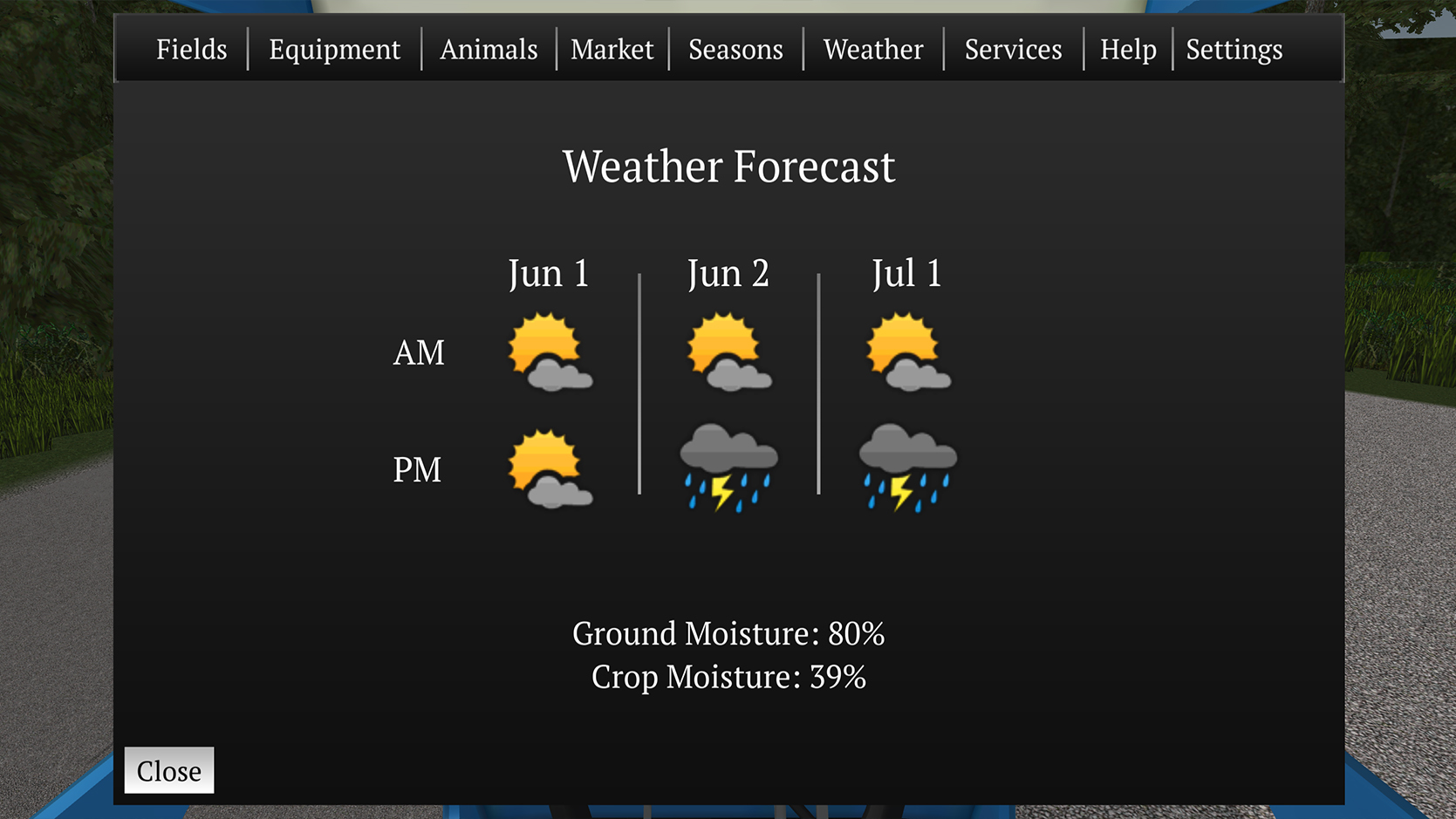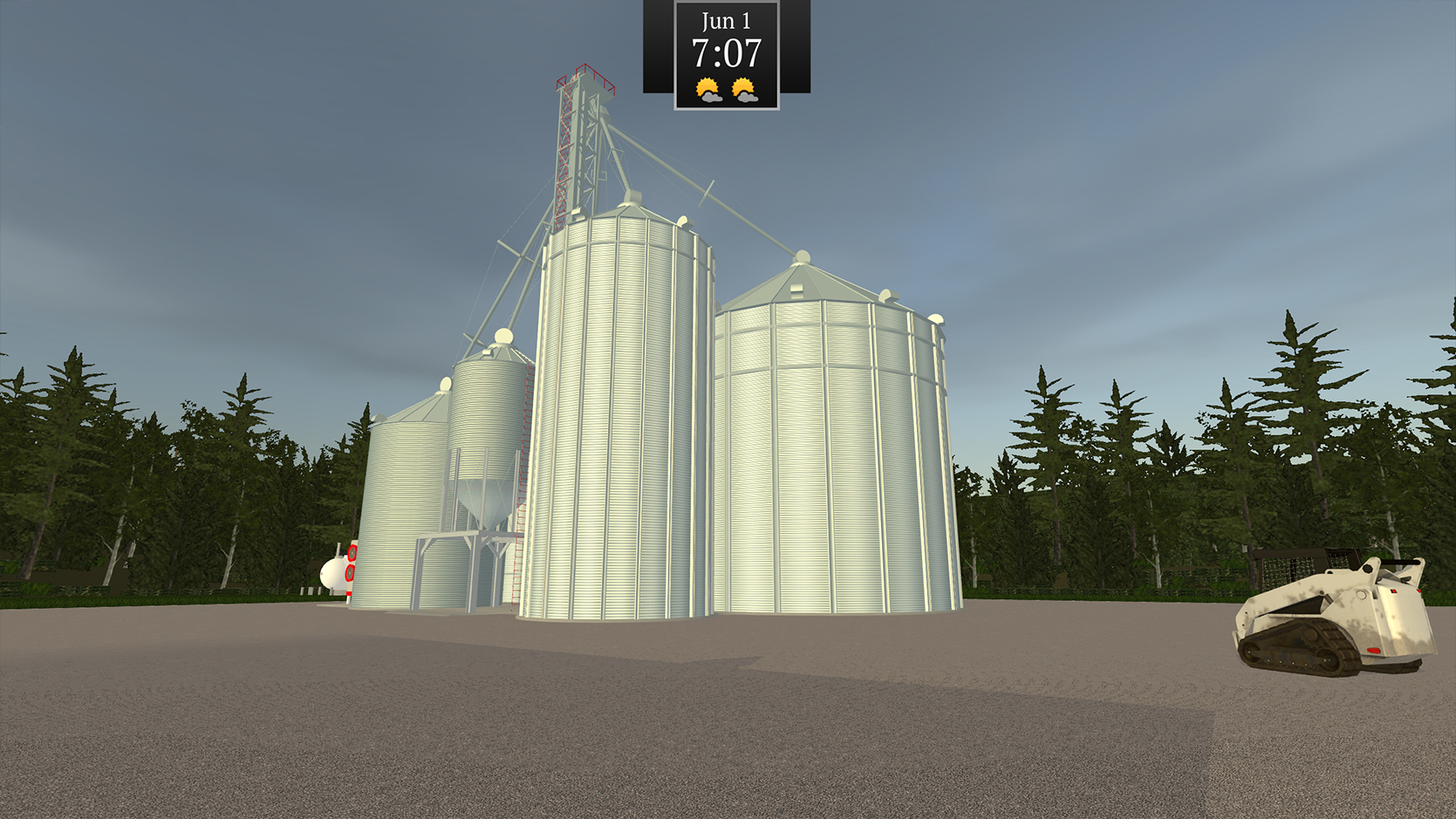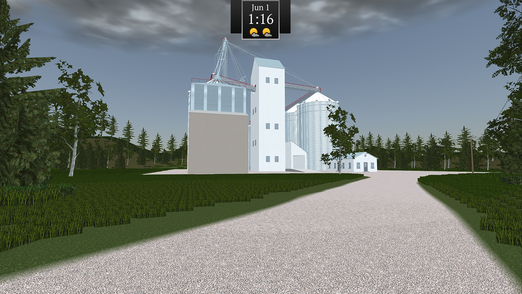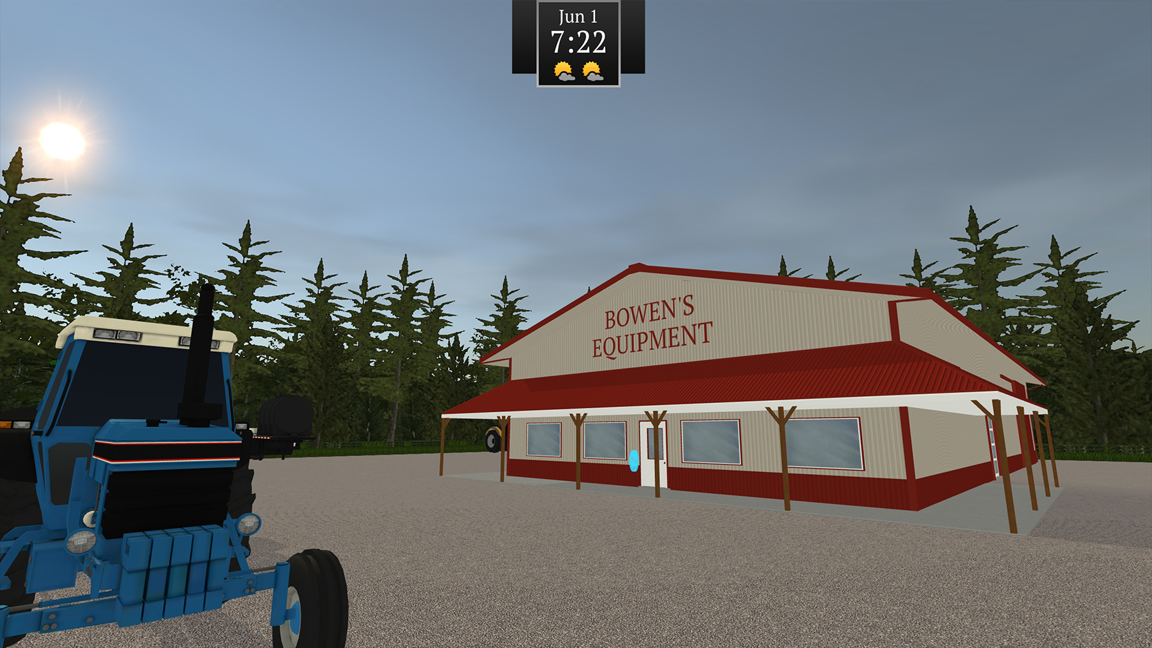 Watch the weather as rain and sun affects the growth and harvest of crops! Too much rain and your fields become muddy. A hard snow in winter will require you to hook up the snow plows to get out of the lot.