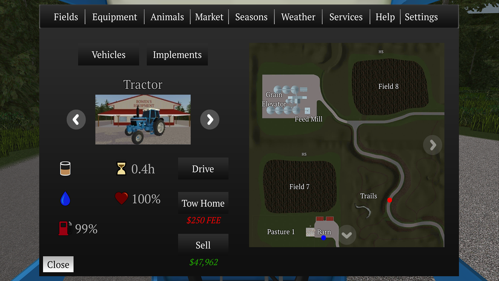 – Manage fields, equipment and animals with a user-friendly menu